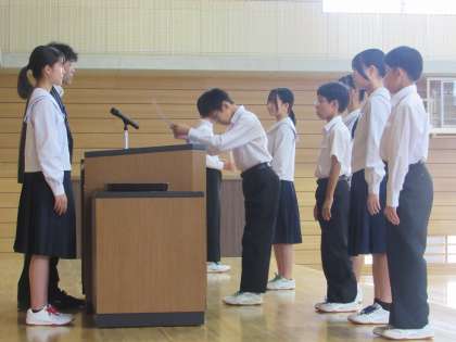 先日行われた「生徒会役員選挙」で当選した「会長」「副会長」「執行委員」の6名に、教頭先生より任命証が手渡されました。