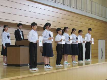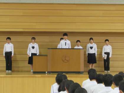 受け取った6名は、全校生徒の方を向き代表で生徒会長より挨拶がありました。