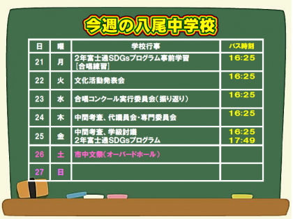 10月20日(日) 今週の八尾中学校