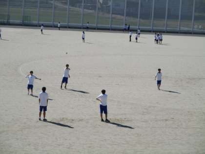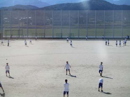 写真中、下は、保健体育の授業の様子です。ソフトボール競技をしています。スポーツの秋!