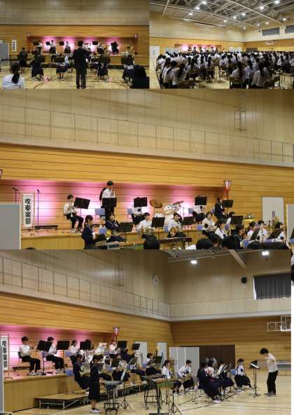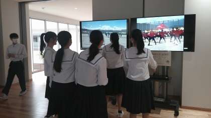 ステージでは、郷土芸能部と吹奏楽部の発表がありました。作品を鑑賞したり、ステージ発表を見たりと、生徒は自由に観覧して回りました。