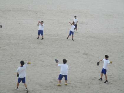 グラウンドでのびのびとソフトボール競技に取り組んでいます。スポーツの秋ですね。