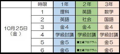 明日は中間考査2日目です。残り2教科、頑張りましょう。