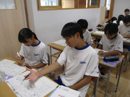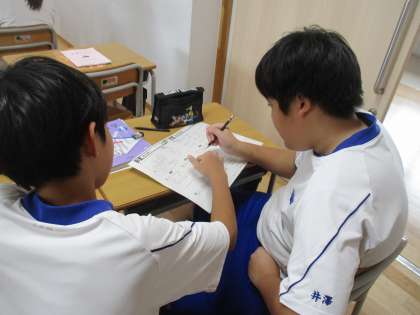 応用クラスと基礎クラス合同で授業を行っています。互いに学び合いながら学習を進めています。「分からないこと」を「分からない」と言える素敵な雰囲気の中で、和気藹々と教え合っています。