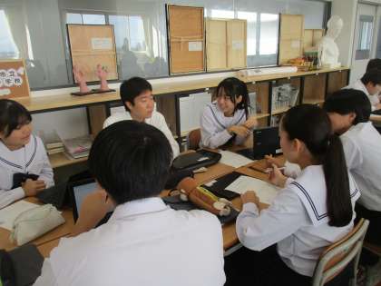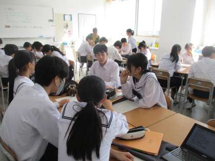 生徒は、キラキラしながら、楽しそうに相談しています。「担任の先生にも出てもらおうよ」「教室のシーンもあるといいよね」、、、と自然にアイディアが沸いてきています。