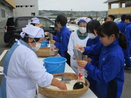 富山県赤十字奉仕団の方々の協力を得て、災害時を想定した、炊き出し体験を行いました。
