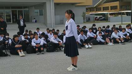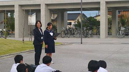 この校外学習の成果を生徒代表が「金沢と八尾を比較し、八尾のよさを再確認しました。今回学んだことを、来年の八尾プロデュースに生かしたいと思います。」と報告しました。