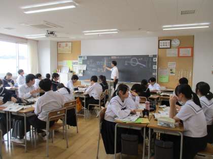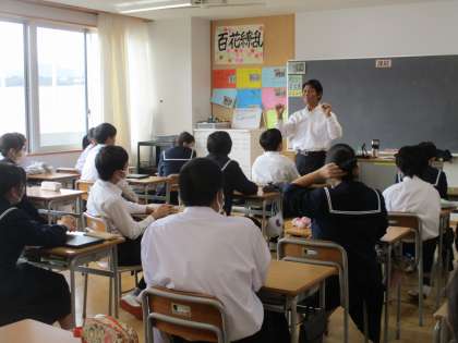 写真下は、保健体育の授業の様子です。メンタルトレーニングについて聴いています。