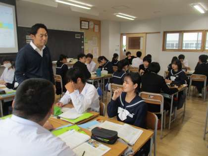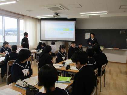 読み物を読み取った後、災害の際に、何ができるかについて考え、それを英語で表現します。