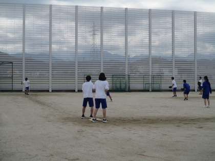 さすが、3年生。バットにボールが当たるので、試合形式で楽しくソフトボール競技に取り組んでいます。