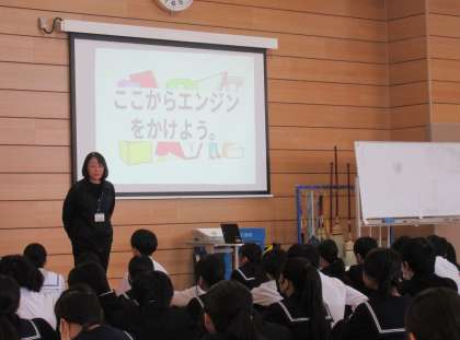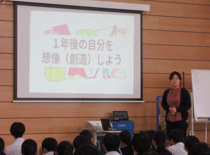 学年生徒会の話の後は、学習担当よりテキスト学習の話をしました。