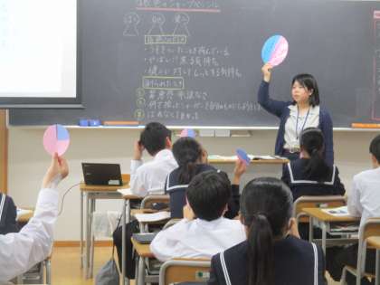挙手も多く、生徒同士で「なるほど」「それってこういうこと?」、、、と対話しながら考えを深めていく姿がたくさん見られました。