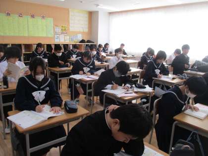 これまでの朝の雰囲気とはがらっと変わり、黙々とテキストを進めています。受検モードです。