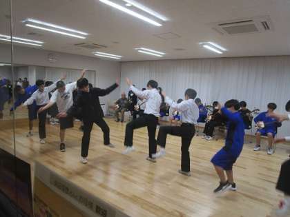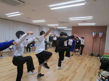 郷土芸能部が踊りの練習に励んでいます。今月末に、PTAの大会で発表します。