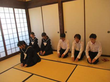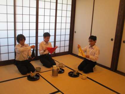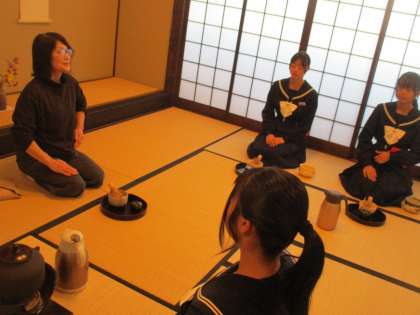 今日は、茶道部の活動日です。講師の先生にご指導いただいています。