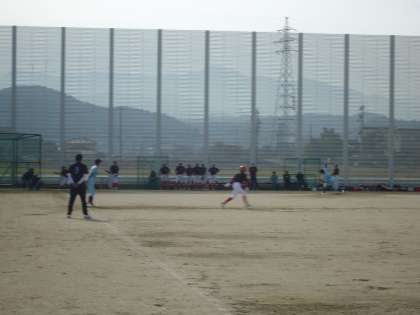 グラウンドで野球部が市内の中学校と練習試合をしています。