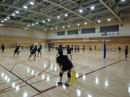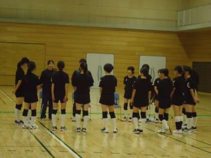 女子バレーボール部は、市内の中学校と練習試合をしています。