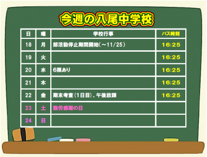 11月17日(日) 今週の八尾中学校