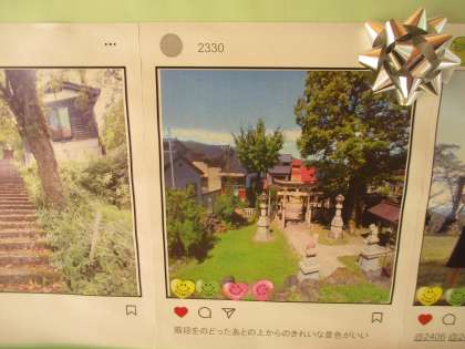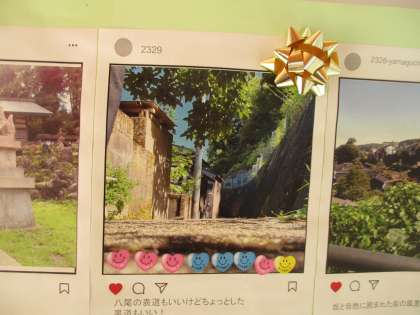 八尾町を探索した際、それぞれベストショットを撮影したものがフォトコンテストとして掲示してありました。受賞作品に花が付いています。
