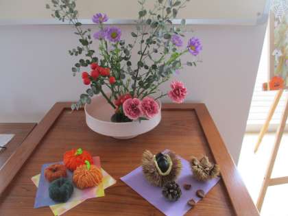 生徒玄関前に「本物」の栗と飾り物の栗が置いてあります。どちらが「本物」か分かるかな。