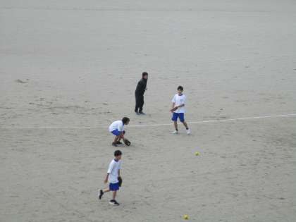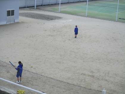 グラウンドは寒そうですが、元気にソフトボール競技を学習しています。