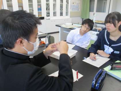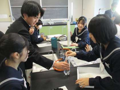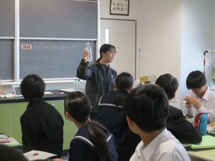 浮沈子という、ペットボトルを押すと中に入っている魚が登ったり沈んだりするというおもちゃの仕組みを探り、説明書を作成するという授業です。