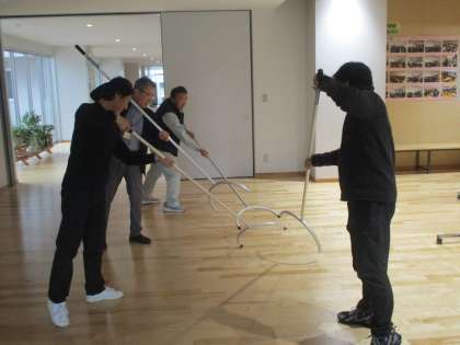 同時に、職員室にいた複数の男子職員が、「刺股」をもって現場に駆けつけ、ただちに不審者を取り押さえました。