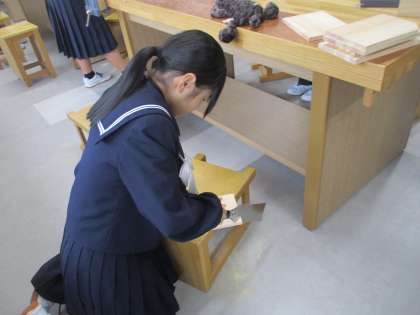 のこぎりで板を切ったり、かんなで削ったりしています。