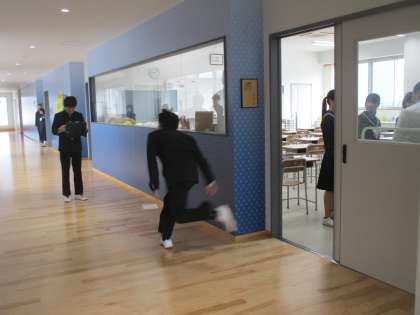 美術室から飛び出し、走り出す少年を撮影しています。どんな歌詞なのでしょうか。