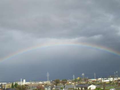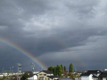 昼休みにアーチ型の綺麗な虹が出ました。そしてまたまた福虹。縁起がよいですね。