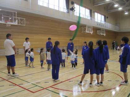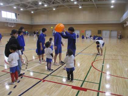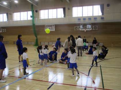 しっぽとりを3回戦行った後は、チームに分かれて風船バレーです。