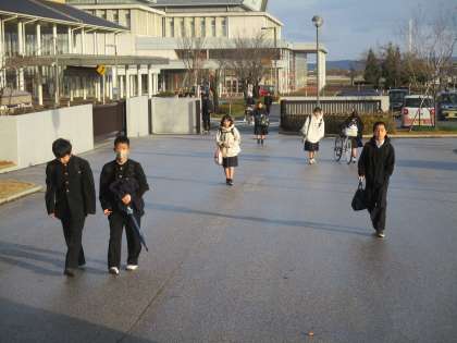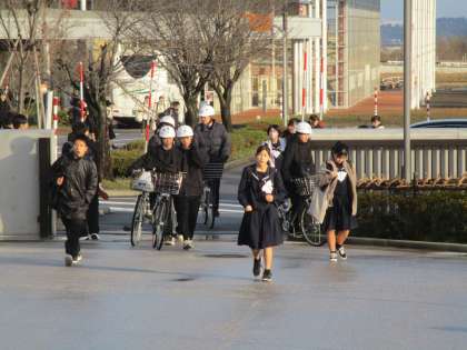 12月12日(木) 今朝の気温は1度! 公開日 2024/12/12 更新日 2024/12/12 八尾中学校のページ 今朝の気温は1度、路面も少し前まで凍っていたかのように太陽の光を反射してます。 寒い中ですが日差しもあり、今日は自転車中学生も多く見られました。 八尾中学校の生徒は、寒さに負けず元気に登校しています。 今後、積雪や降雪が見られなくても路面が凍っている場合、自転車通学は禁止となります。 時間に余裕をもって登校しましょう!