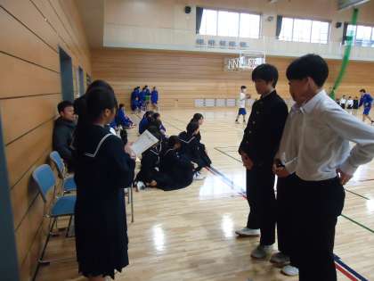 シュート対戦方式で試合が進められ、決勝は3年2組、2年2組、1年4組の対戦となりました。その結果、2年2組が他の2チームを制して優勝しました。