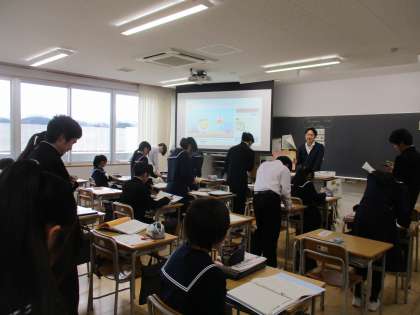 写真中・下は、英語の授業の様子です。ビンゴをしたり、基礎の見直しをしたりしています。