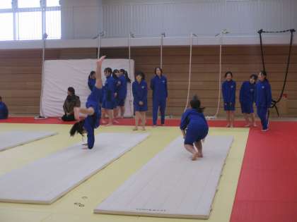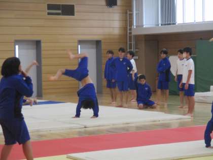 12月16日(月) 2年生 保健体育 マット運動 公開日 2024/12/16 更新日 2024/12/16 八尾中学校のページ 体操がさかんな、杉原こども園の園児に見られて俄然張り切っています。10年前はあんなに小さく素直だったんだぞと教科担当の先生に言われています。