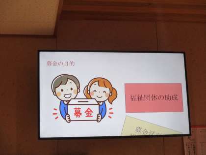 今日が最終日です。サイネージ(電光掲示板)でも、募金を呼び掛けています。