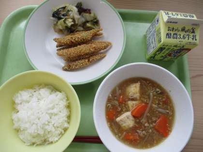 12月17日(火) 今日の給食は? 公開日 2024/12/17 更新日 2024/12/17 八尾中学校のページ 今日のメニューは、 1 ごはん 2 牛乳 3 きびなごのサクサク揚げ 4 海藻サラダ 5 厚揚げの中華煮込み です。 「きびなご」は、美しい銀色の体に帯模様が入った小さい魚で、鹿児島県や高知県の郷土料理としても親しまれています。身が柔らかいので、頭から尻尾まで丸ごと食べることができるのも特徴です。サクサクして美味しいですね。