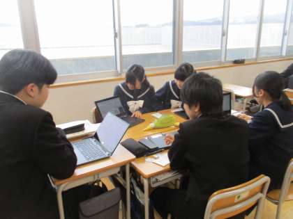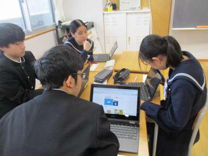 それぞれ、衣服に関するSDGsについて調べたことを班で紹介し合っています。