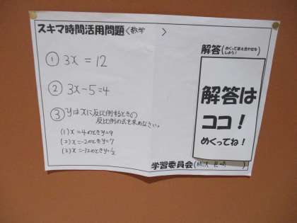 廊下の至るところに、「隙間時間問題」が掲示してあります。