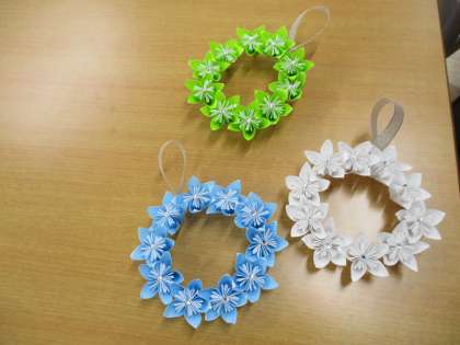 生徒が手作りしてくれたクリスマスリースです。細かい作業の素敵なリースがクリスマスムードを高めています。ありがとう。