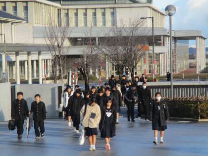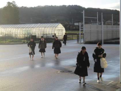 12月19日(木) 青空の下 公開日 2024/12/19 更新日 2024/12/19 八尾中学校のページ 今朝の気温は1度と寒さ厳しい中ですが、青空の下太陽の光を浴びながらの登校となりました。 しかし、この後は雨や雪の予報となっており、自転車通学生の姿はほとんどありませんでした。 保護者懇談会2日目です。 ご多用のところ恐縮ですが、保護者の皆様よろしくお願いします。気を付けてお越しください。