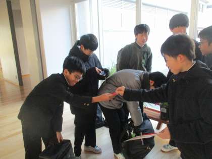 たくさんの生徒が、募金箱の前で鞄を下ろし、中から財布を取り出して募金に協力してくいます。