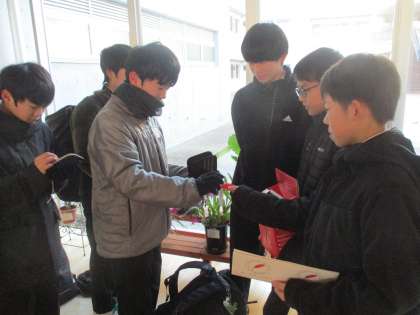 今日も生徒玄関では、生徒会執行部が募金活動の呼びかけを行っています。