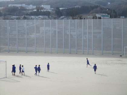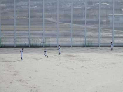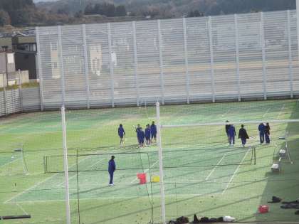 雪もなく水たまりもなくグラウンドで野球部、サッカー部、テニスコートではソフトテニス部が練習に励んでいます。