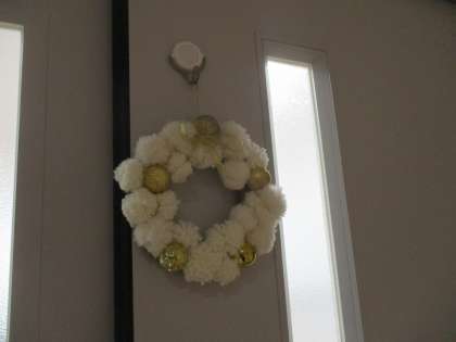 生徒が毛糸で作ってくれたリースです。