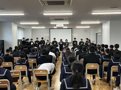 多くの行事を乗り越えて成長した2学期でした。学級代表からのMVP表彰、今学期の振り返り、生活や学習の話、学年主任の先生からの話等、盛りだくさんでした。