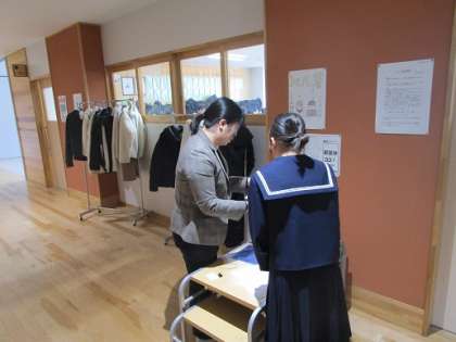 終業式後の学活で、担任の先生が生徒一人一人に通知表を手渡しました。