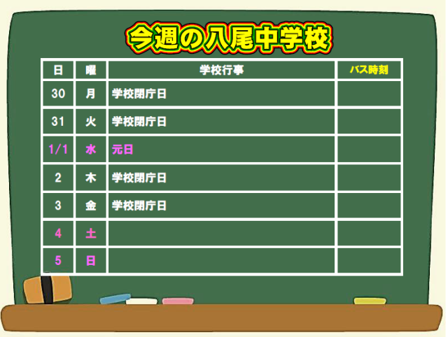 12月29日(日) 今週の八尾中学校
