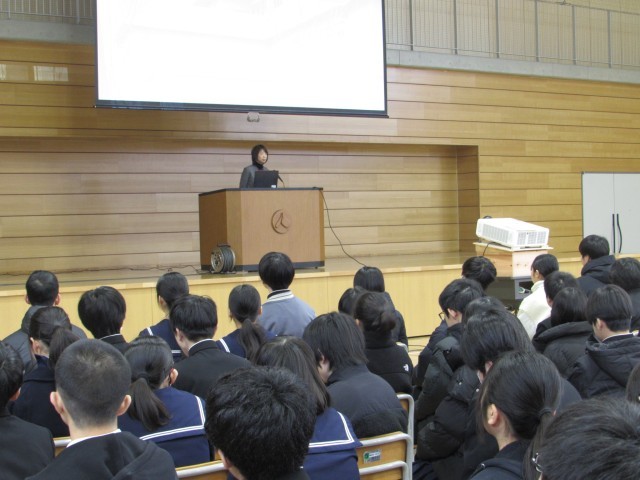 生徒も全員が顔を上げて、映し出されたスクリーンを見ながら、真剣に話を聴いていました。