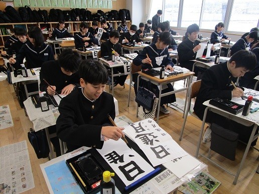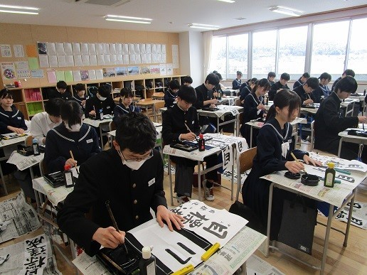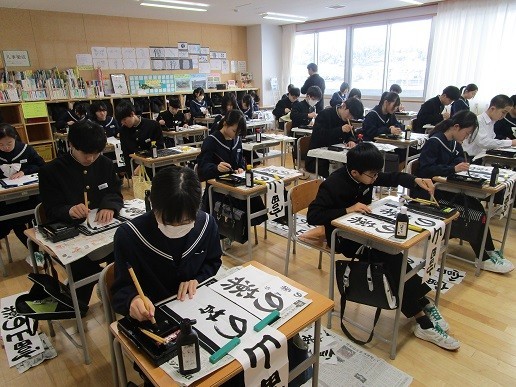 3年生は「目標達成」をそれぞれ心を込めて書きました。